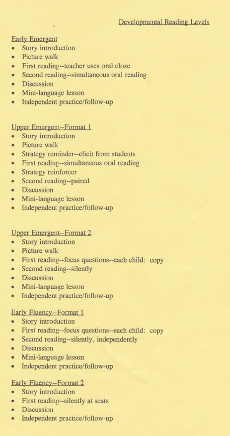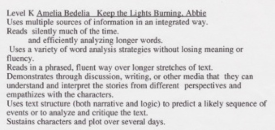 Marie Clay introduced the leveling text - not just readability text determined by DRP or Lexile. Marie Clay’s leveling text focuses on: content, illustrations, length, curriculum, language structure, judgment and format. The student is given a choice of books to read that have an element of challenge. Books are clustered together according to difficulty. The teacher engages in a supportive conversation while doing the “Picture Walk.”