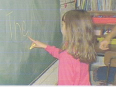 In the beginning the teacher writes the child’s oral sentence. As s/he does the teacher stretches out each word.