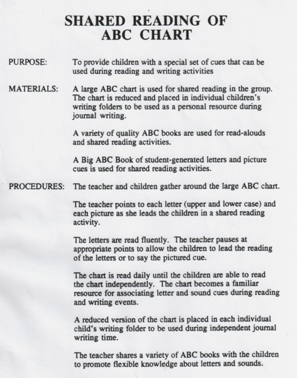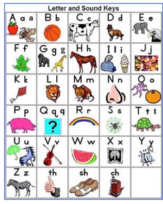 4.Make a large alphabet chart; for each letter place a picture that begins with that sound. Each day have the children recite in unison: