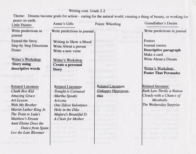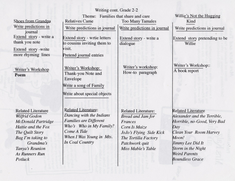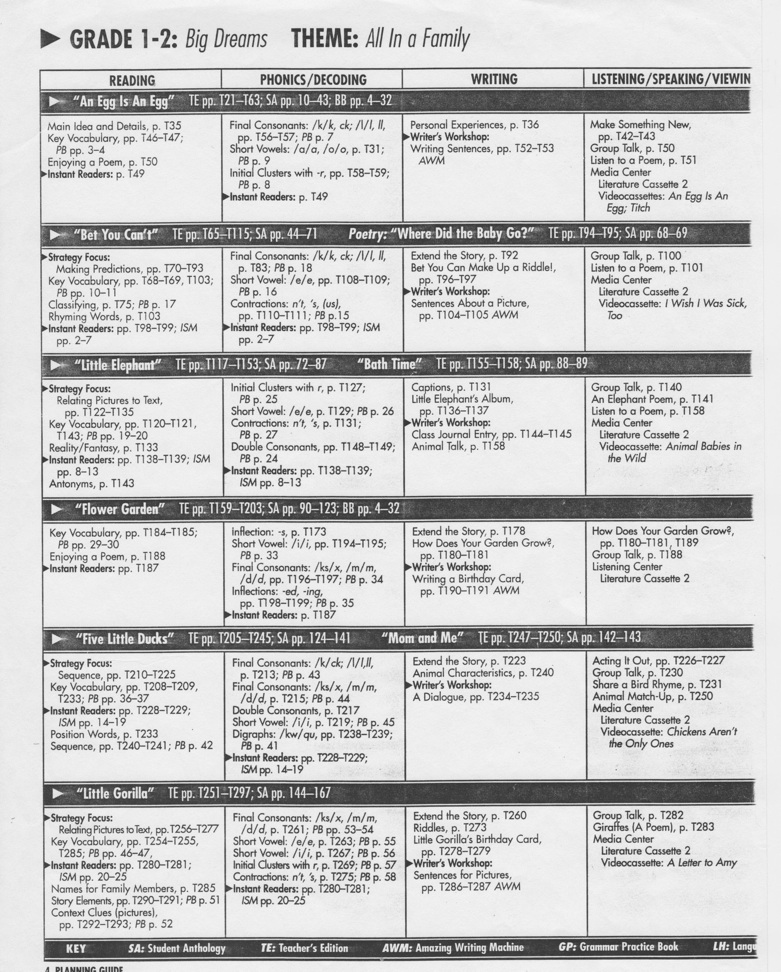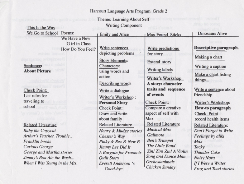 The following are charts illustrating how, in the past, Harcourt integrated literacy skills. Harcourt has since been purchased by Pearson Company which is anchored in the Common Core Standards- a far cry from what literacy instruction should look like.