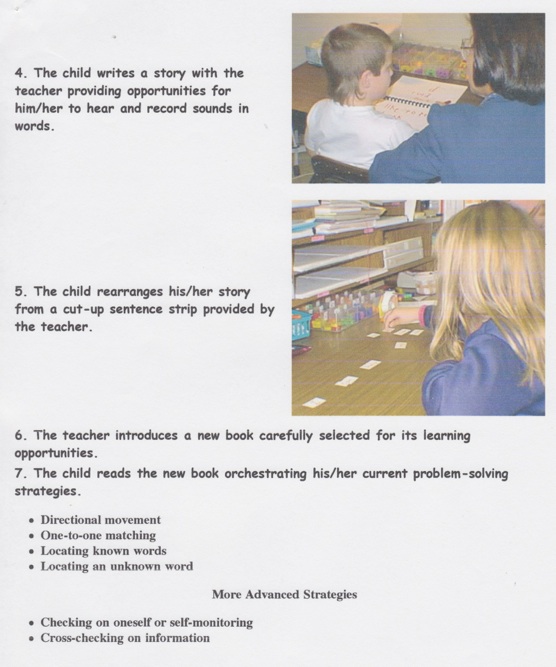 -As the child rereads a book introduced in the prior lesson while the teacher does a running record- (observes and records the child’s reading behaviors.) The teacher chooses 2-3 teaching points.
