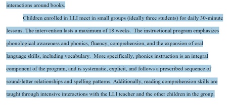 • Tutoring includes instruction in writing fluently of selected high frequency words and choosing books for reading at home.