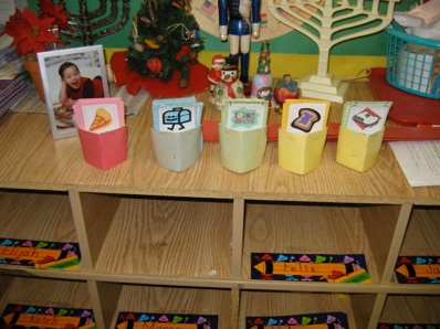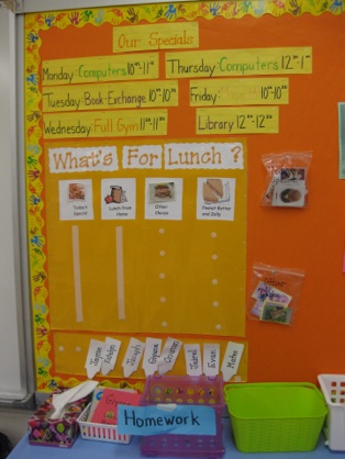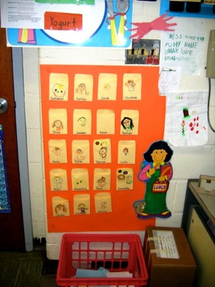 class choose the type of lunch they want and then place the card in their “Lunch Pocket.” (Reading labels and their name)