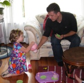Gwyneth, having tea with Uncle Camilo at the age of 4.