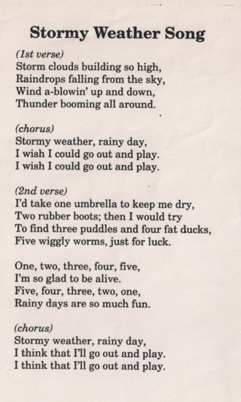 1. Teach the poem to the children. Pause at t he end of every other line to let them say the rhyming words as you read the poem.